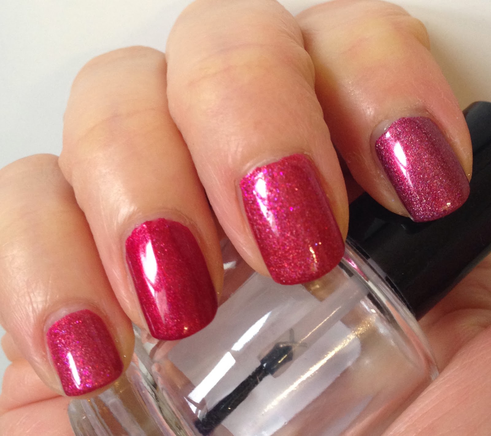 I cannot remember where I read that reference but it was suggested that Picture Polish Scarlett might be worth a comparison with A England Rose Bower - well, read it and obeyed: